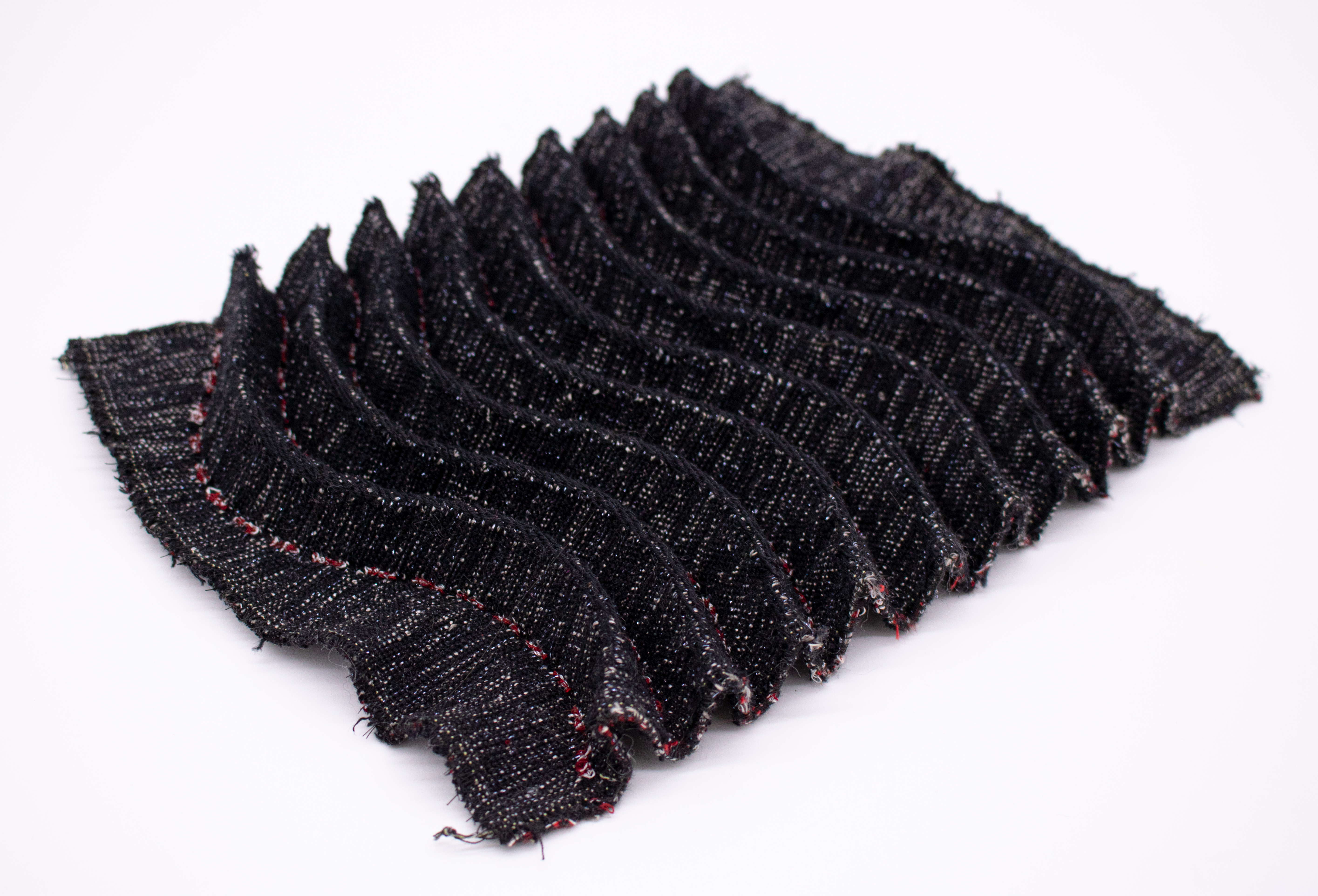 The natural progression after working out successful structure for permanent, strong folds is to take those straight folds and utilize the power of a jacquard loom to introduce lines that couldn’t be done so easily on a regular loom.